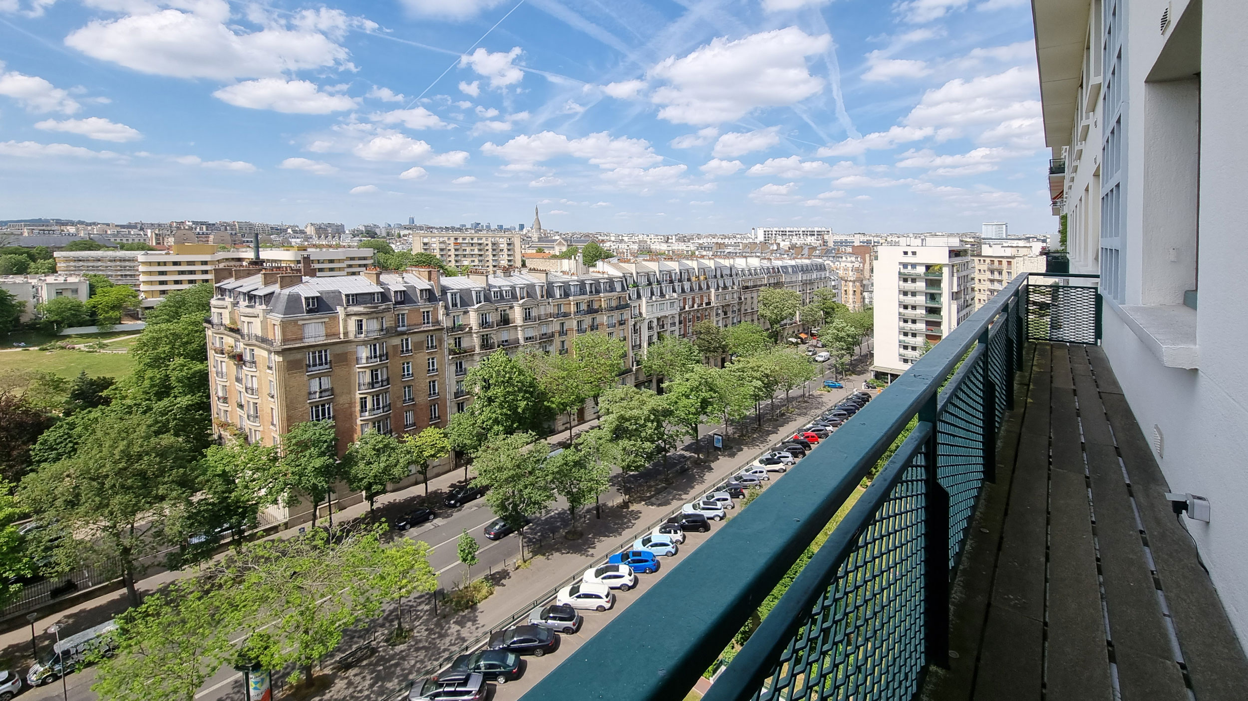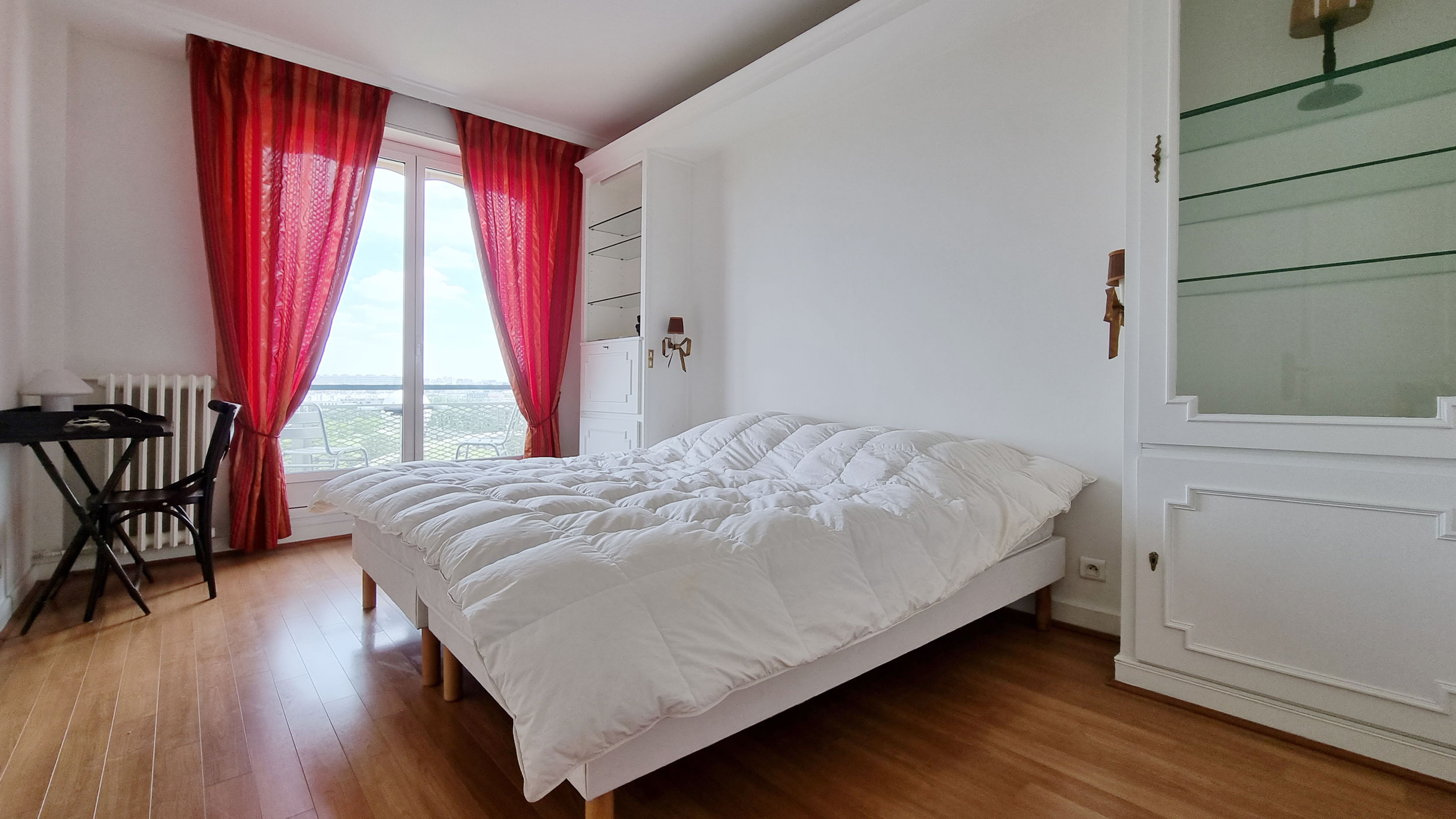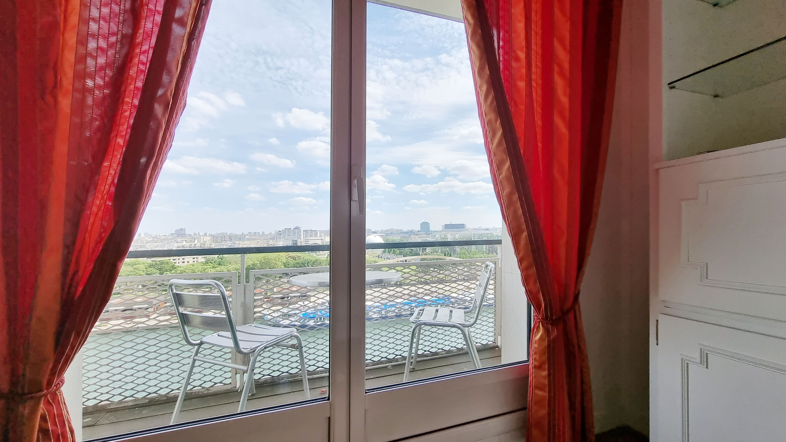 Un appartement meublé au 10ème étage avec ascenseur, 2 balcons et vue sur la Tour Eiffel. Comprenant une entrée, un double living, deux chambres, une cuisine équipée, une salle de bain, un wc et une place de stationnement.