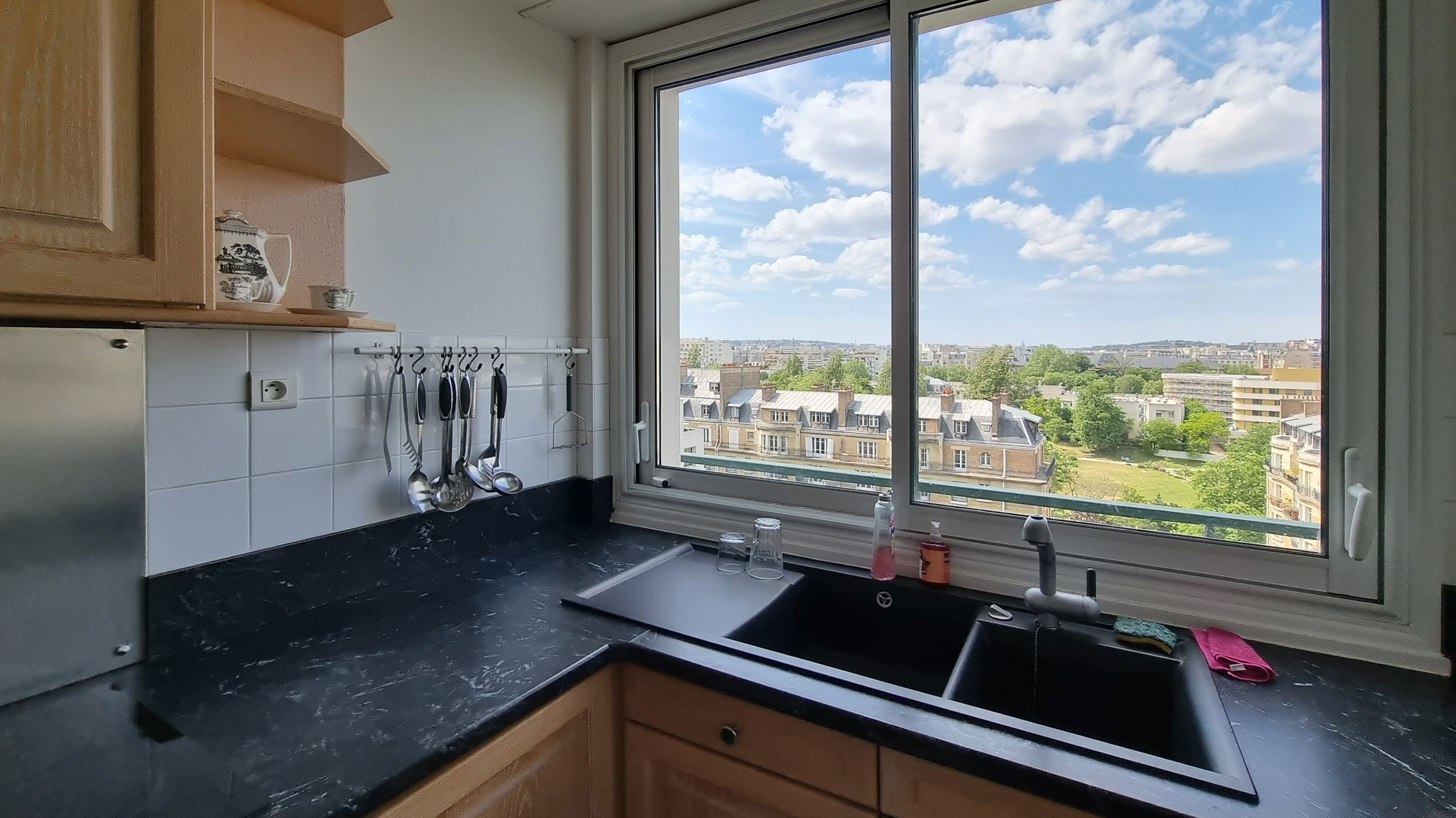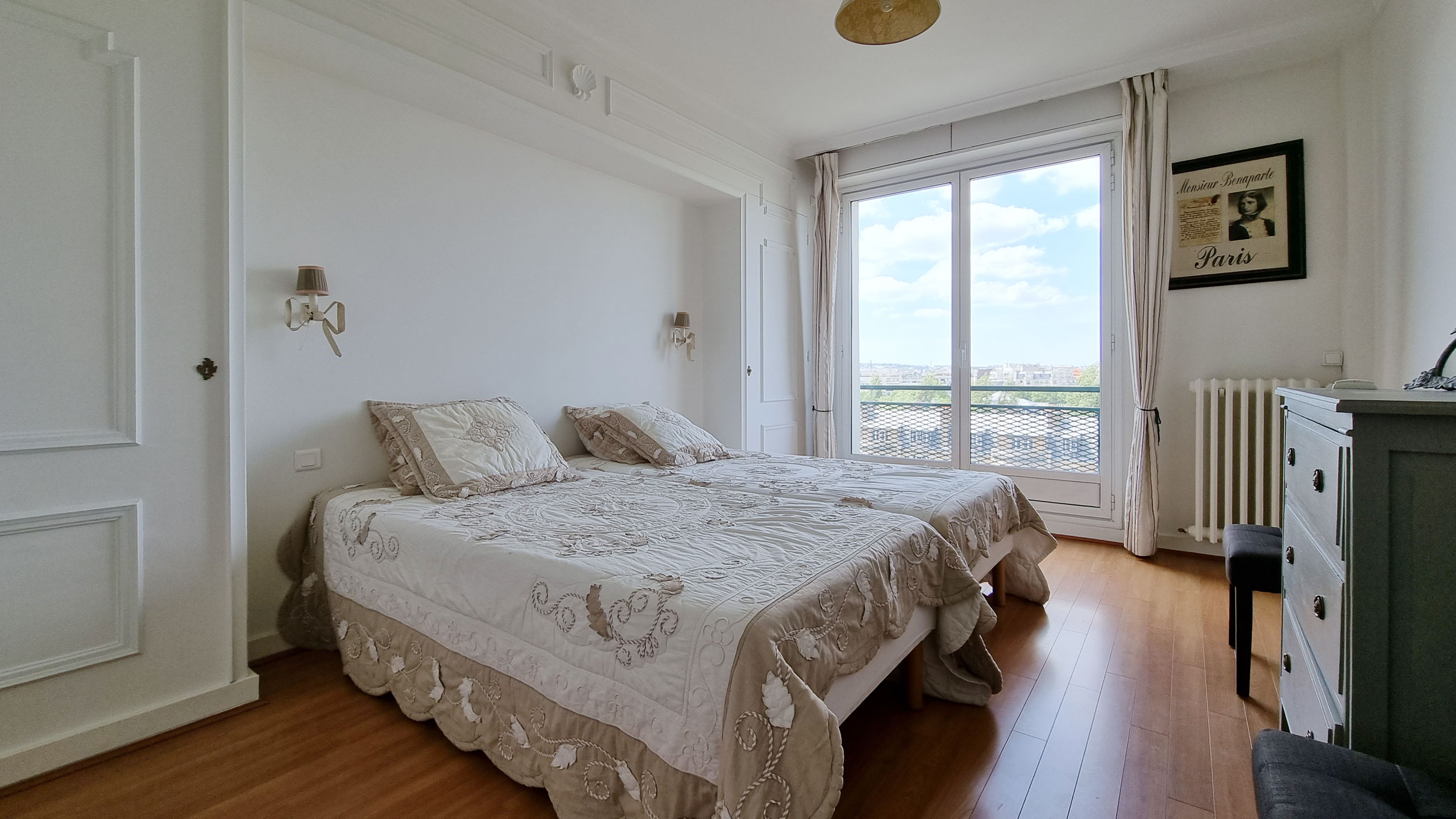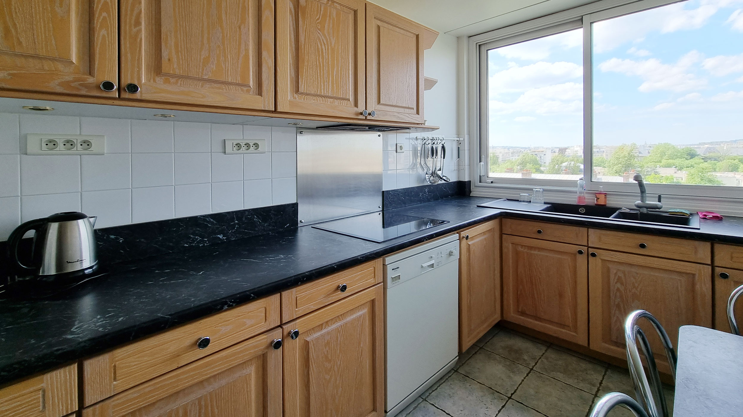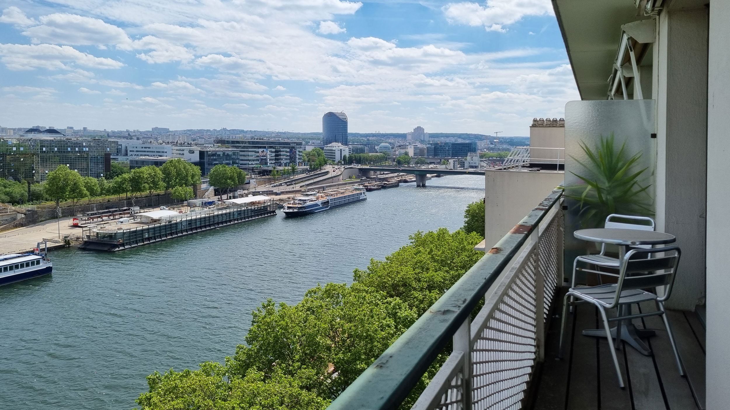 Un appartement meublé au 10ème étage avec ascenseur, 2 balcons et vue sur la Tour Eiffel. Comprenant une entrée, un double living, deux chambres, une cuisine équipée, une salle de bain, un wc et une place de stationnement.