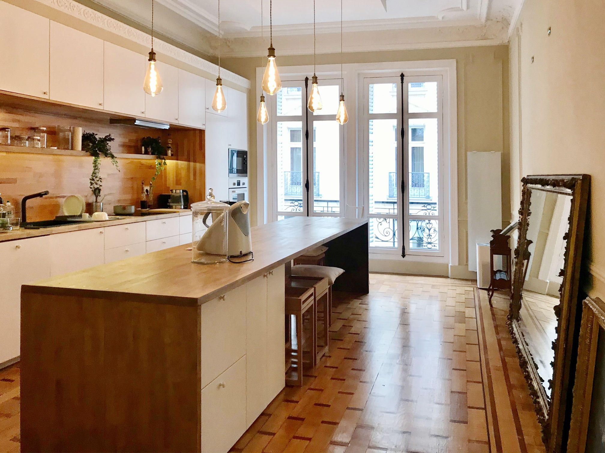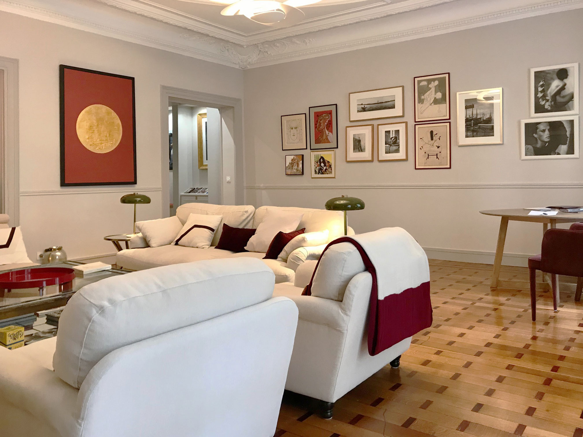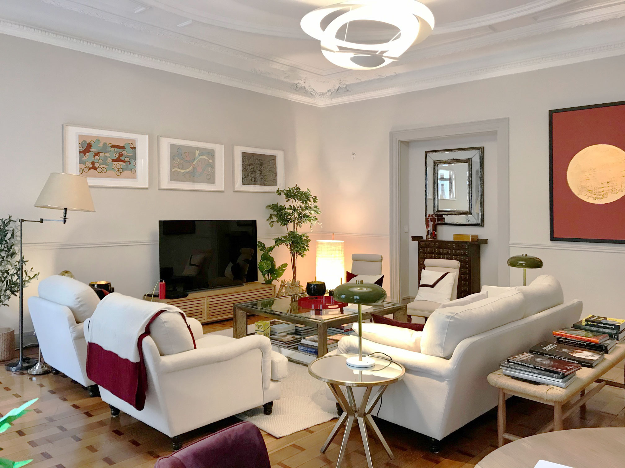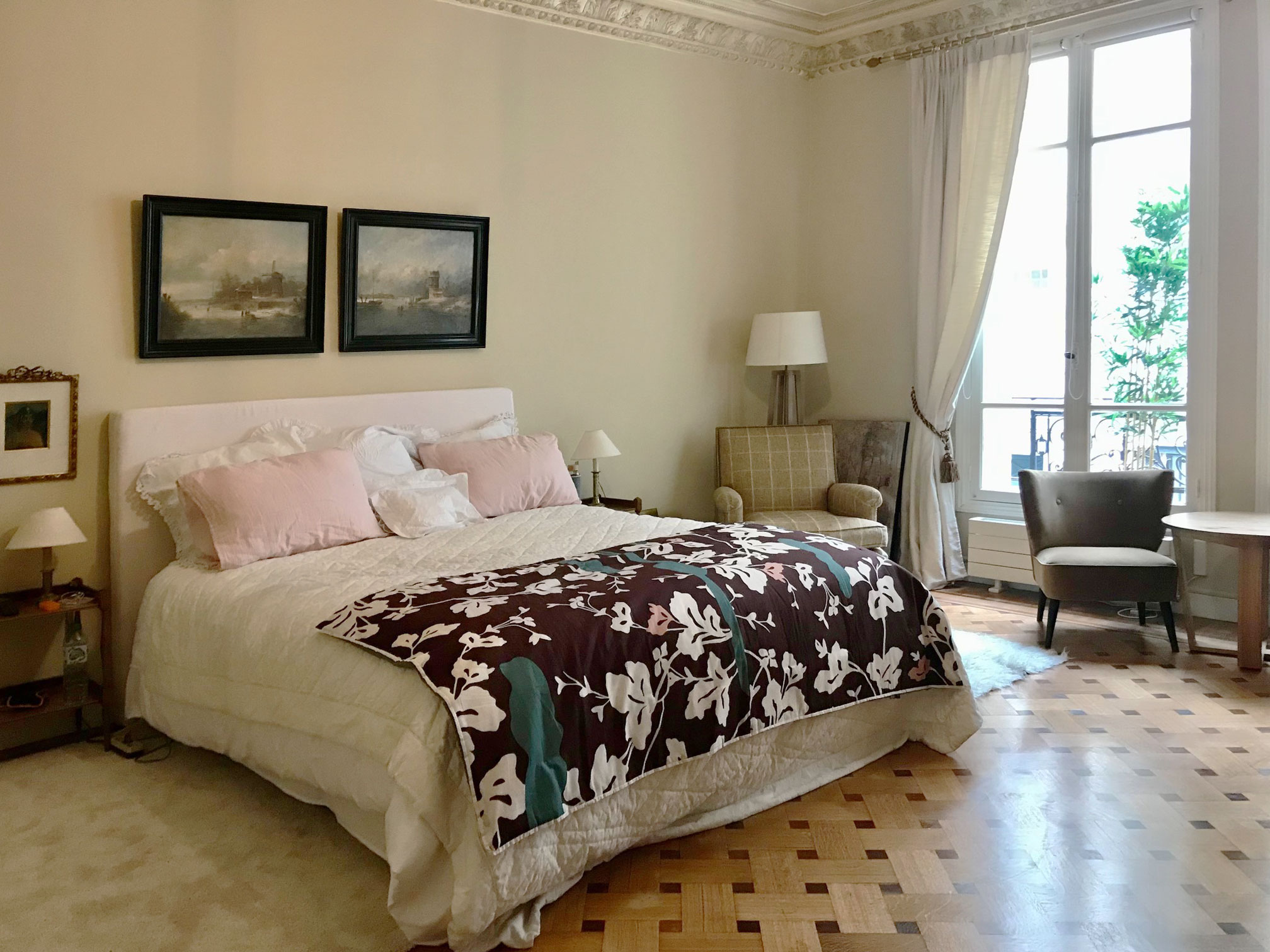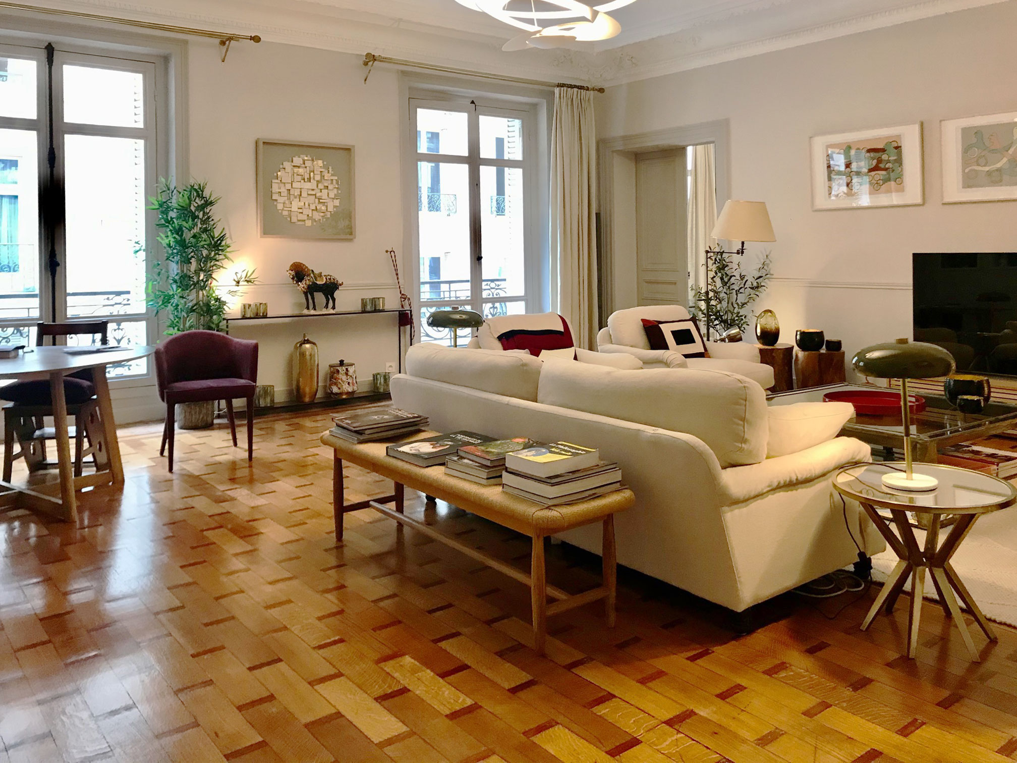 Au 1er étage d’un magnifique immeuble Haussmannien, un appartement de 180m² meublé en parfait état comprenant , une entrée, une grande cuisine entièrement équipée et indépendante, un séjour/salle à manger, 3 chambres, deux salles de bain et deux wc Loyer CC 5500 €/mois